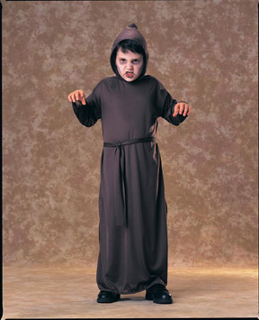 This great medieval monk costume is a perfect ensemble for a Halloween costume, religious school play, or just being part of Robin Hood's merry men.  Includes a robe, hood with capelet, wig and belt.